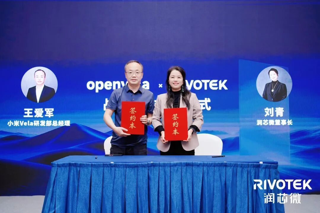 随后,小米Vela研发部总经理王爱军与润芯微董事长刘青正式签署 openvela 战略合作协议。双方将立足各自技术与产业优势,深化开源生态共建、技术协同与场景落地,强化资源互补、携手共赢,共同加速 openvela 生态完善与规模化普及,助力万物智联产业高质量发展。
