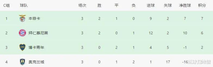 另外一边,博卡青年对阵奥克兰城,本来这是一场强弱分明的比赛,毕竟奥克兰城前2轮2连败且丢了16球,但是这场比赛比拜仁那边晚结束涨中宝,在得知本菲卡1-0领先后,这对于博卡青年来说,也许是个打击,毕竟他们只积1分即使大胜奥克兰城也不能出线。比赛中,博卡青年率先打进1球,1-0领先,但是随后球队节奏放慢,这给了奥克兰城机会,下半场,奥克兰城角球机会,皮球发出来后,克里斯蒂安-格雷头球得分,1-1,最后奥克兰城1-1逼平博卡青年,爆出大冷门。