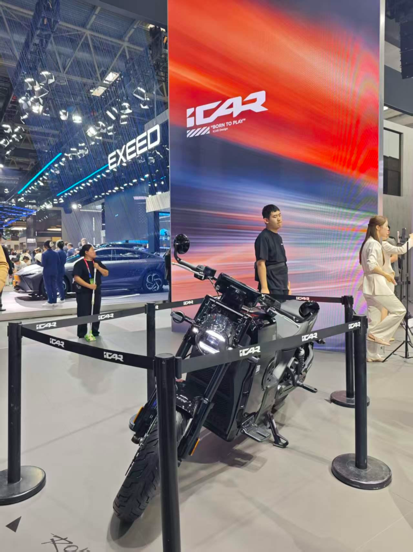 车展上,iCAR做了体系化能力的展示。除了作为主角的ROBOX,还有V23“白武士”设计概念版和ROBOB新能源摩托车。