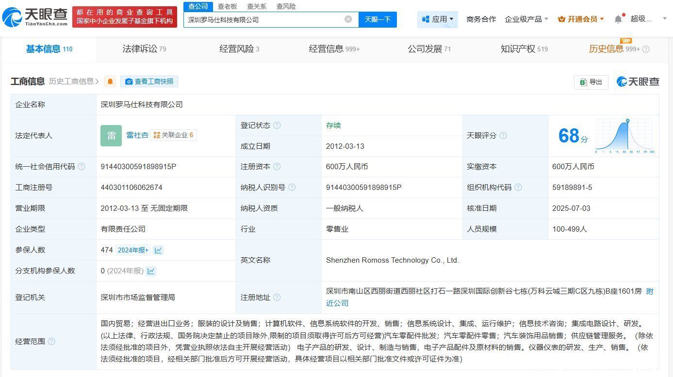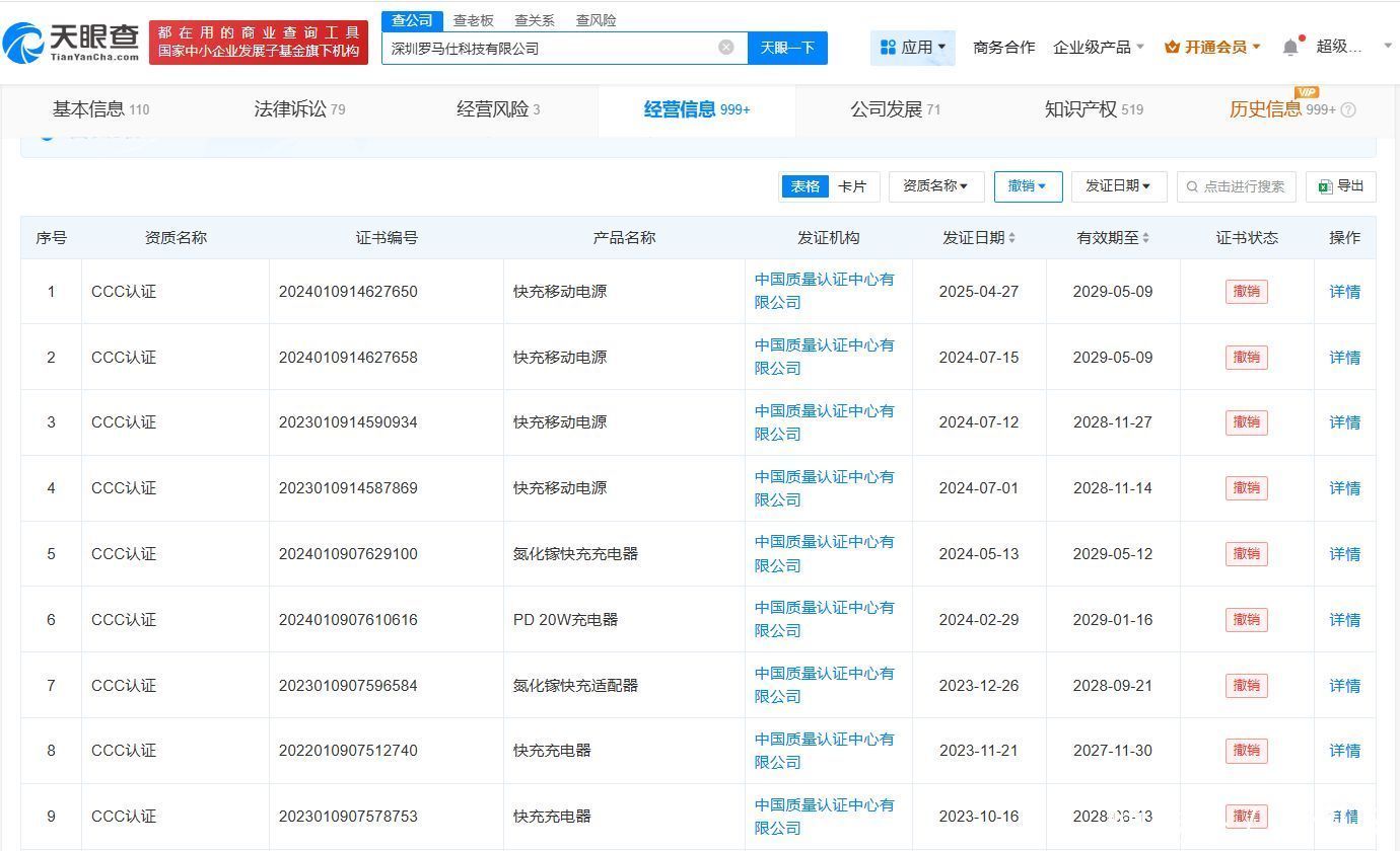 天眼查App显示,深圳罗马仕科技有限公司成立于2012年3月鼎冠策略资,法定代表人为雷社杏,注册资本600万人民币,经营范围包括信息技术咨询,集成电路设计、研发等,由雷桂斌、雷灿伙共同持股。对外投资信息显示,该公司持有7家存续企业股份。经营信息显示,该公司多个“CCC认证”证书处于暂停或撤销状态。